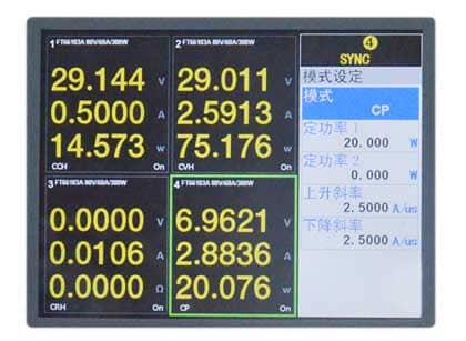 FT66100A負載提供動態(瞬態)功能,可根據設定在兩個參數間周期切換,且可設置切換斜率,此功能常用于測試電源瞬間特性,動態模式更可提供高達20KHz的動態頻率,讓你的測試得心應手。