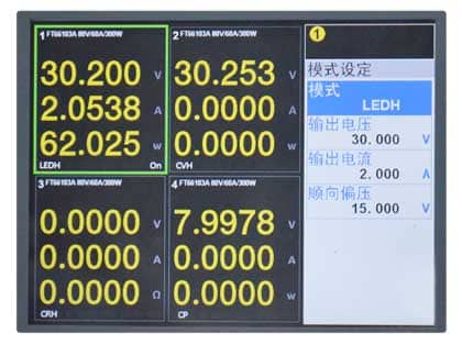 費思對于負載應用于LED驅動測試做了多項改進, 對FT66100的恒壓功能進行了修正,使其更接近于LED的工作特性曲線,為了適應各種不同方案的恒流源設計了恒壓3種速度可調, 以便于LED驅動測試帶載能力范圍。附帶FT66100的LED功能, 是通過設置LED燈具的工作電壓、工作電流和導通電壓,來確定負載的導通曲線,從而模擬某一個具體的燈具來對LED驅動進行驗證。